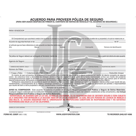 Agreement to Furnish Insurance
