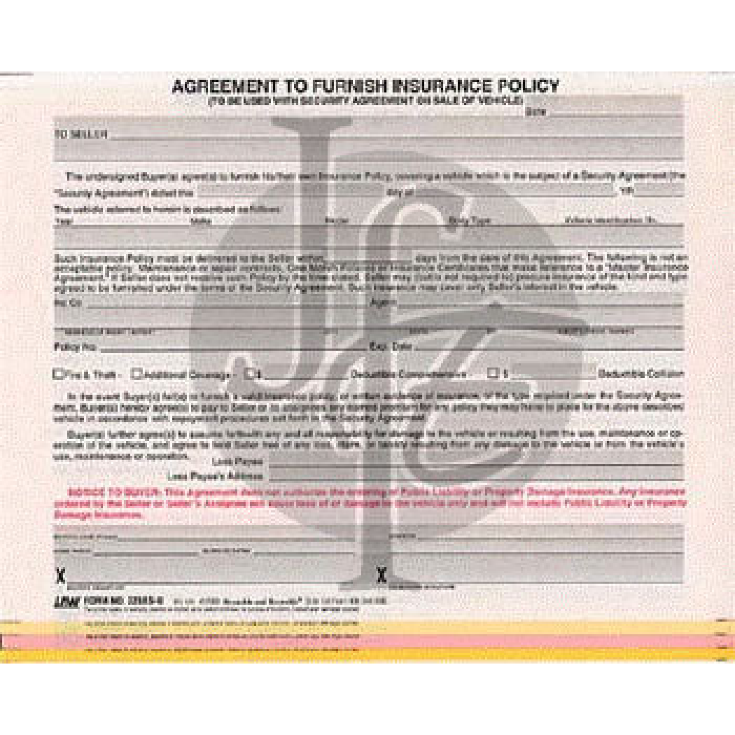 Agreement to Furnish Insurance