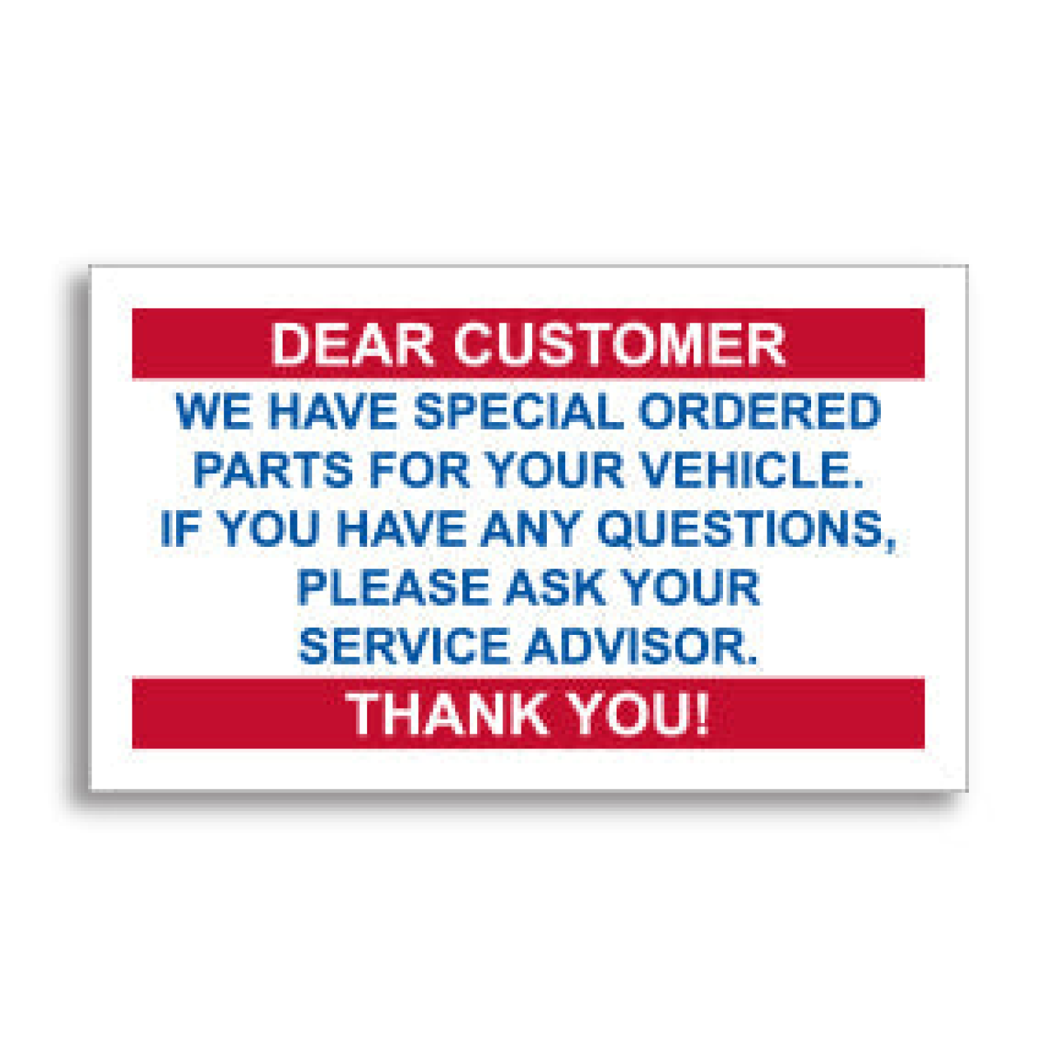 Static Cling Reminders - Part on Order (Dear Customer) - BOX of 100