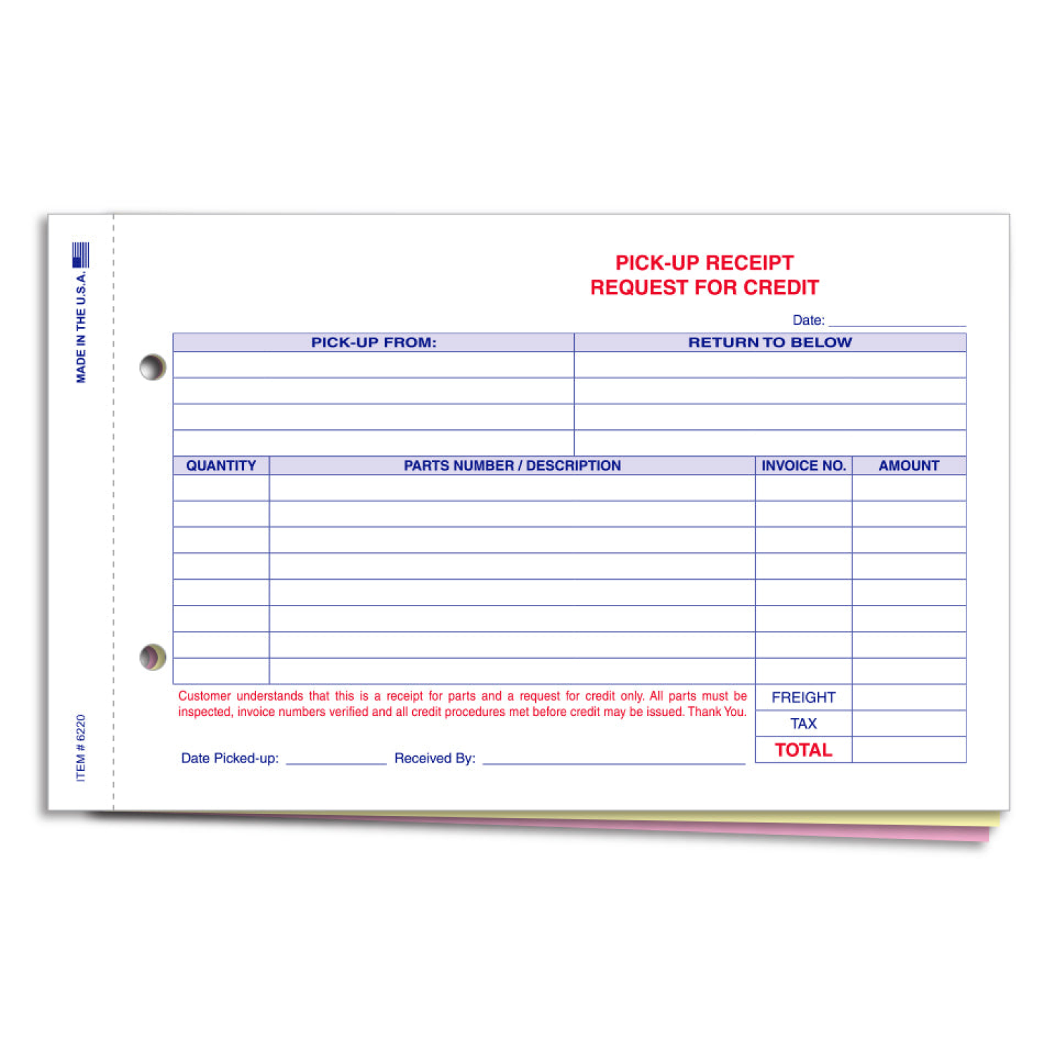 This form tracks returned parts and requests for credit. Part 1 is the customer copy, Part 2 goes to accounting and Part 3 remains in the parts dept.