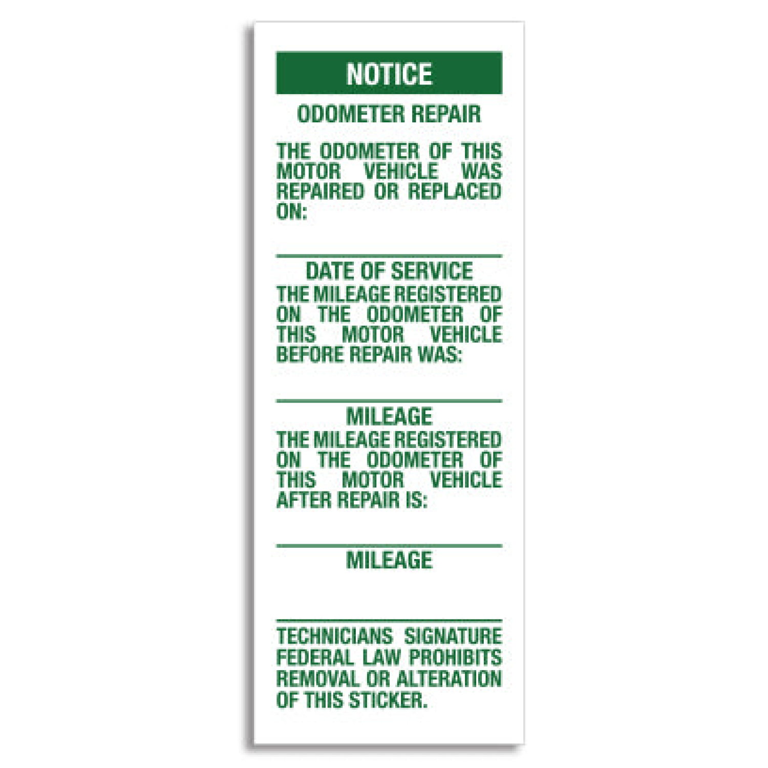 Whether it’s the law or dealership courtesy, you should always use this label when the odometer has been repaired or changed.