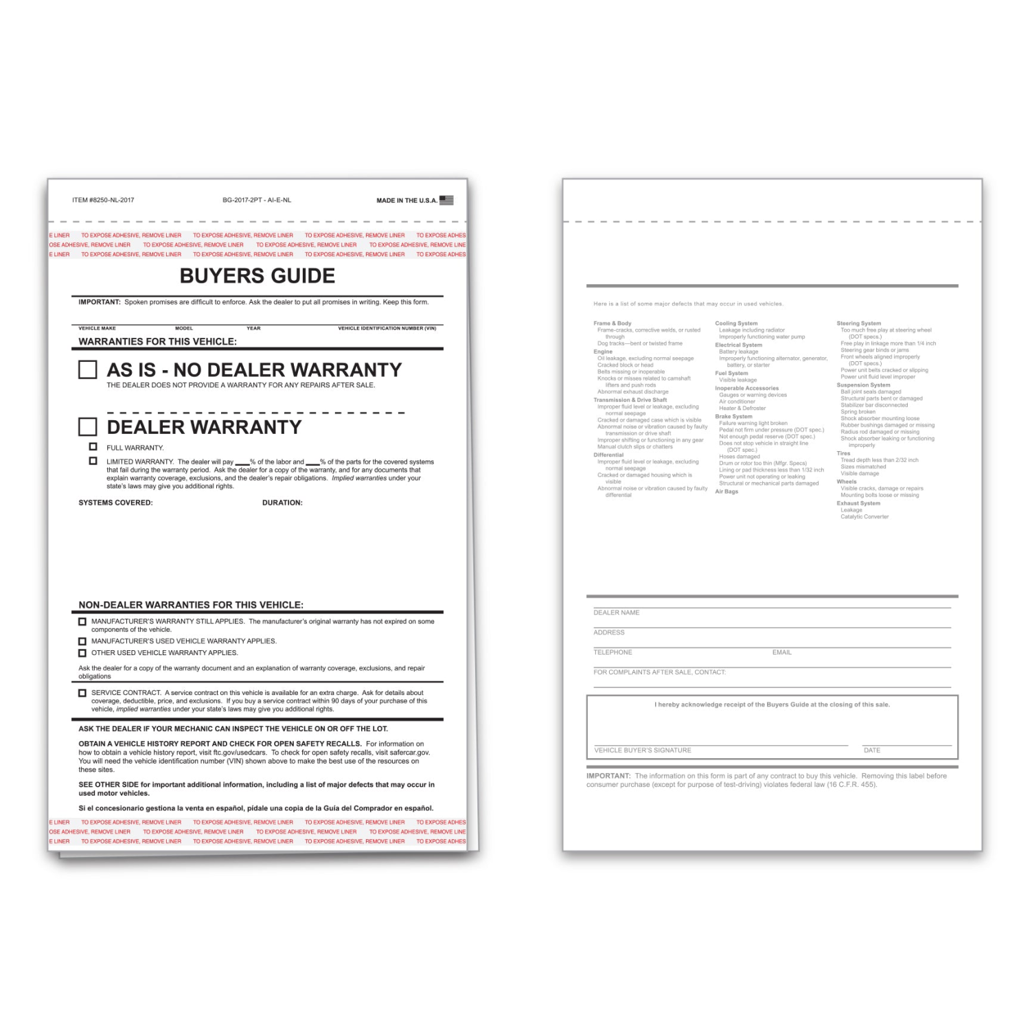 Buyers Guide - BG-2017-2PT - AI-E-NL - As Is - 2 Part - No Lines