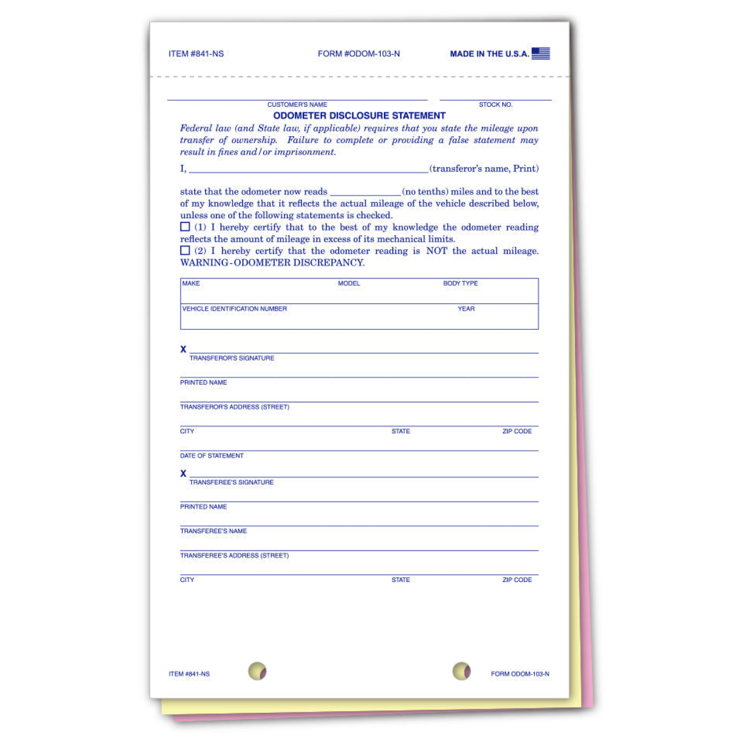 Odometer Disclosure Statement - ODOM-103-N - 3 Part - No Screen