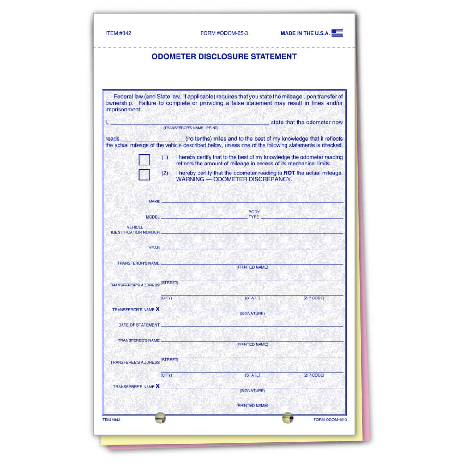 Odometer Disclosure Statement - ODOM-65-3 - 3 Part
