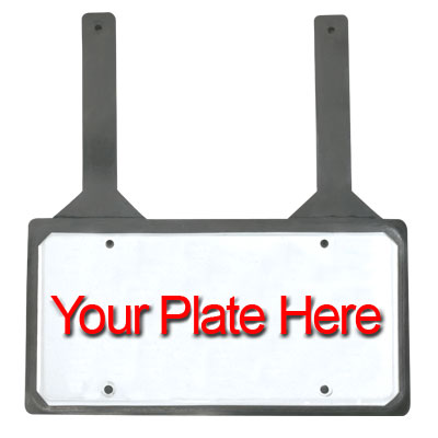 - This plate holder is strongly secured to the trunk, hood or rear window by knobs on the back of the straps.